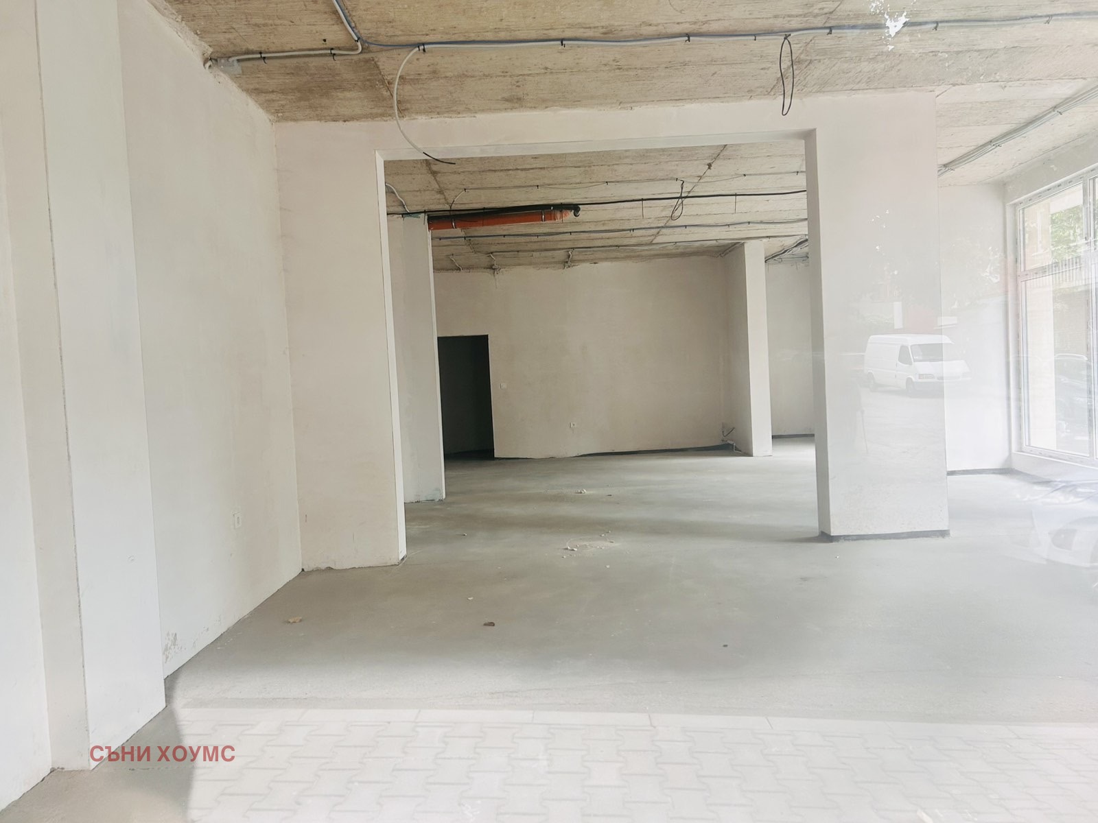 Помещението е с чиста площ около 110 кв. м. и се състои от търговска част и санитарен възел. Състоянието му е на шпакловка и замазка, като довършителните дейности са въпрос на договаряне.