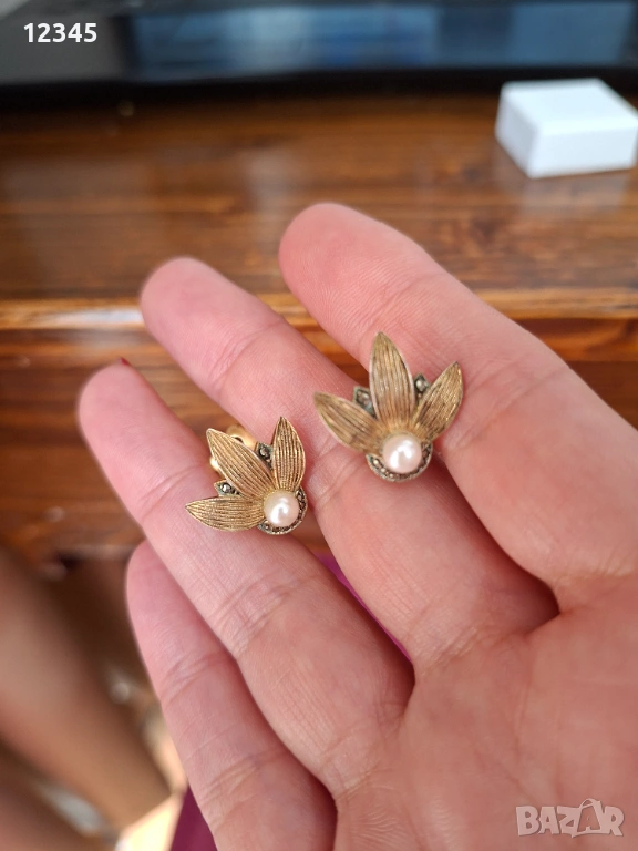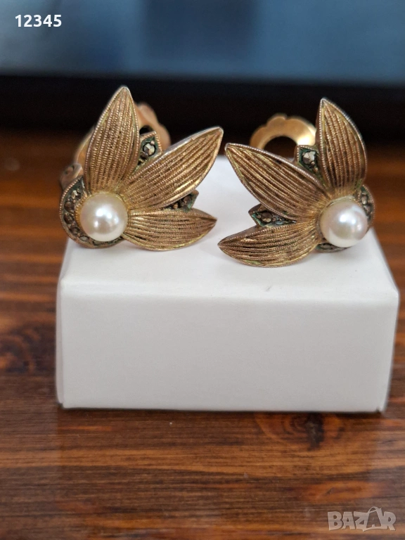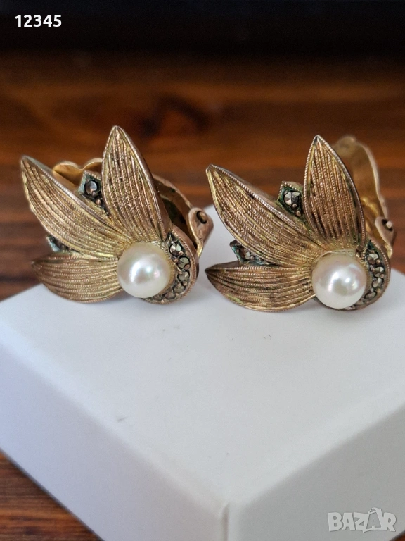 Оригинални маркови позлатени сребърни обеци с маркизати и перли " Fahrner" → Обява 54075048