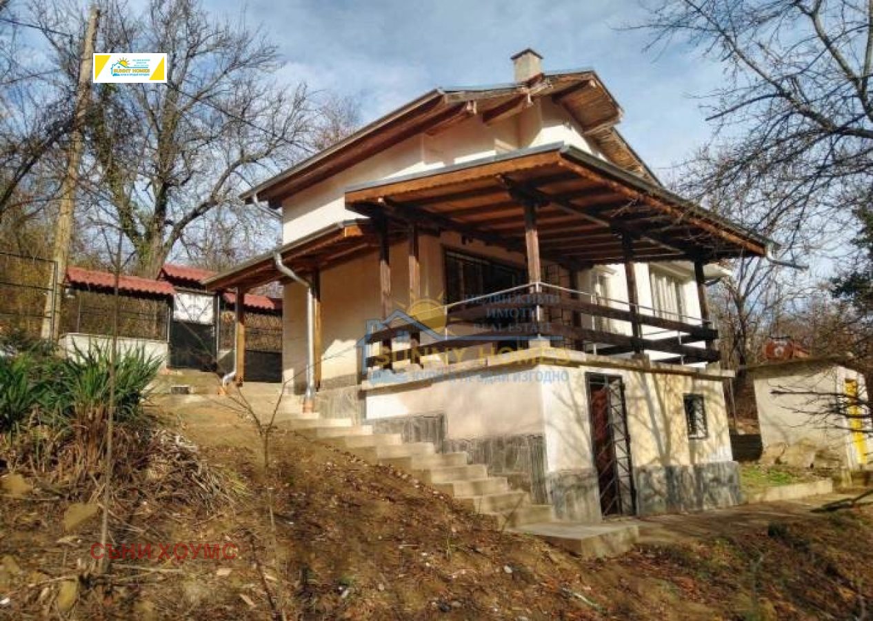 #31050 SUNNY HOMES недвижими имоти ви предлага двуетажна къща, ЗП 160 кв.м., тухла, двор 500кв.м. в едно от живописните села на предбалкана 20км южно от град Велико Търново. Сградата е със следното разпределение: приземен етаж, стая 20кв.м. помещение с барбекю 10кв.м, 1-ви-етаж: антре, баня с тоалетна, спалня ,кухня с камина, дневна, веранда, 2-ри етаж :две спални с обща тераса, таванско помещение. Изцяло нов покрив с хидро изолация, навес веранда, както и изграден навес, в предверието на втория етаж. До къщата се стига по асфалтов, в близост река и гора, има изградена хидрофорна система .