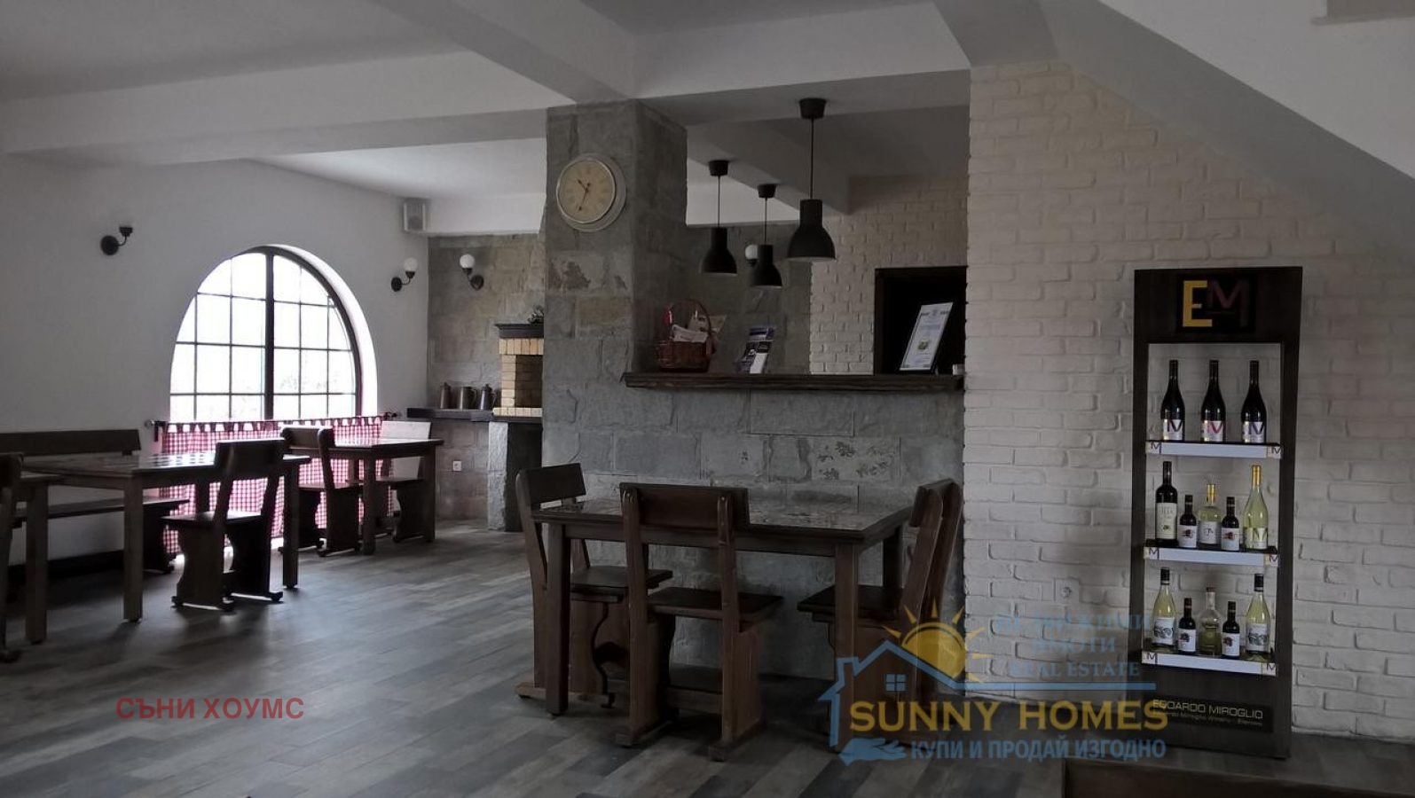 Отоплителната система е независима на пелетен котел, с мощност 50 kW, с бункер 300 kg, което осигурява отоплителната система в непрекъснат режим. Котелното е разположено в отделно техническо помещение. Отоплението се ползва от септември до април в зависимост от метеорологичните условия. На втория етаж на къщата във всяка стая са монтирани радиатори за водно отопление. Допълнителното топлоснабдяване минава през топлоизолиран под. На първия етаж на сградата в близост до панорамни прозорци има конвектори, също с топлоразпределение през пода. Подаването на топла вода се осигурява от бойлер с обем 200 литра. СГРАДА: Сградата отговаря на всички технически европейски стандарти. При изграждането на сградата са използвани пенобетони блокове YTONG. Производител на плочки BRAMAC. Висококачествената топлоизолация на сградата позволява да използва икономично топлоснабдяването на къщата през зимата и есента без използване на допълнително оборудване за охлаждане през лятото. Външните стени са облицовани с камък, което придава на къщата тоскански стил. Благоприятното разположение на сградата и големите панорамни прозорци осигуряват естествена дневна светлина във всички стаи. Всички ВиК инсталации са осигурени от Ideal Standard: душ системи с термостат, окачени тоалетни с функция биде, мивки и смесители, както и вана в главната спалня. Допълнително оборудване: хладилник Ariston, професионален газов котлон с електрическа фурна Technogas (Италия), абсорбатор, малки кухненски уреди, пералня.