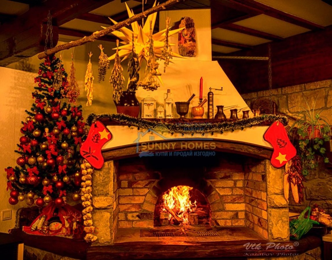 3. МЕХАНА: 50 кв.м., с топлоизолация и големи витражи към планината. В механата е изградена пещ (за печене на две агнета) и барбекю. Отопление с пелетна печка. Напълно обзаведена. Продава се с обзавеждането (кухненски шкафове, пелетна печка, LCD телевизор, хладилник, фризер, съдомиялна, готварска печка, 2 броя големи маси масив и 6 пейки масив). Кухненските шкафове, маси и пейки са ръчно изработени от масив по поръчка за помещението.