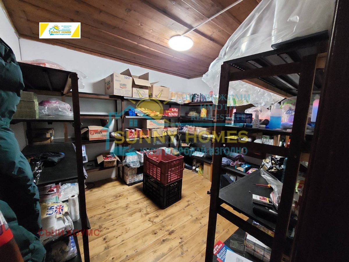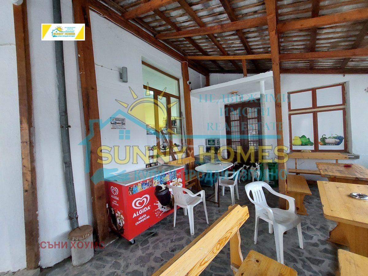 Къщата има следното разпределение: първи етаж търговско помещение около 40 кв. м., три склада и баня с тоалетна с обща площ 30 кв. м., навес с дървени маси и пейки.