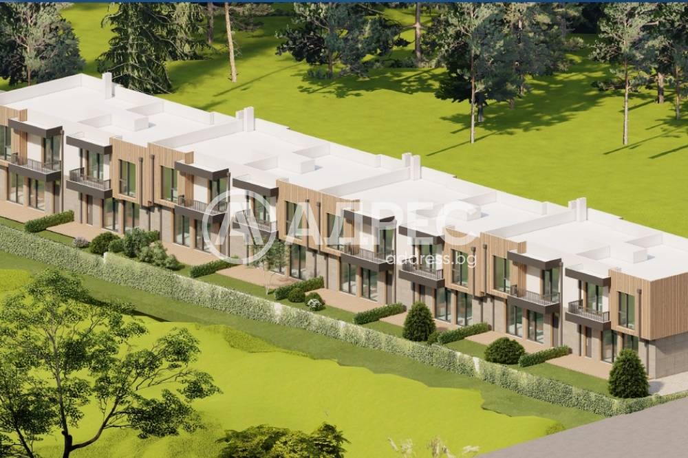 'Адрес' предлага къщи - ново строителство в близост до градския парк! В парцел от 1166 кв. м. ще бъдат разположени 8 броя индивидуални двуетажни къщи с прилежащо дворно място и паркомясто отпред! Всяка сграда на първия етаж разполага с общирна дневна с кухня и трапезария, с достъп до веранда и двор, склад, мокро помещение и тоалетна. Вторият етаж се състои от три спални, две бани с тоалетни и балкон. Осигурен е достъп и до плоския покрив. Двата етажа са свързани с широко вътрешно стълбище.