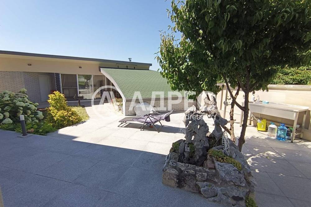 Голяма, луксозна къща - монолитно строителство! Има изградена допълнителна постройка с камина, съчетаваща в себе си уюта на зимна градина и прохладата на лятна кухня - 70 кв.м., с отделен санитарен възел и два склада. Къщата има и маза - 45 кв.м.