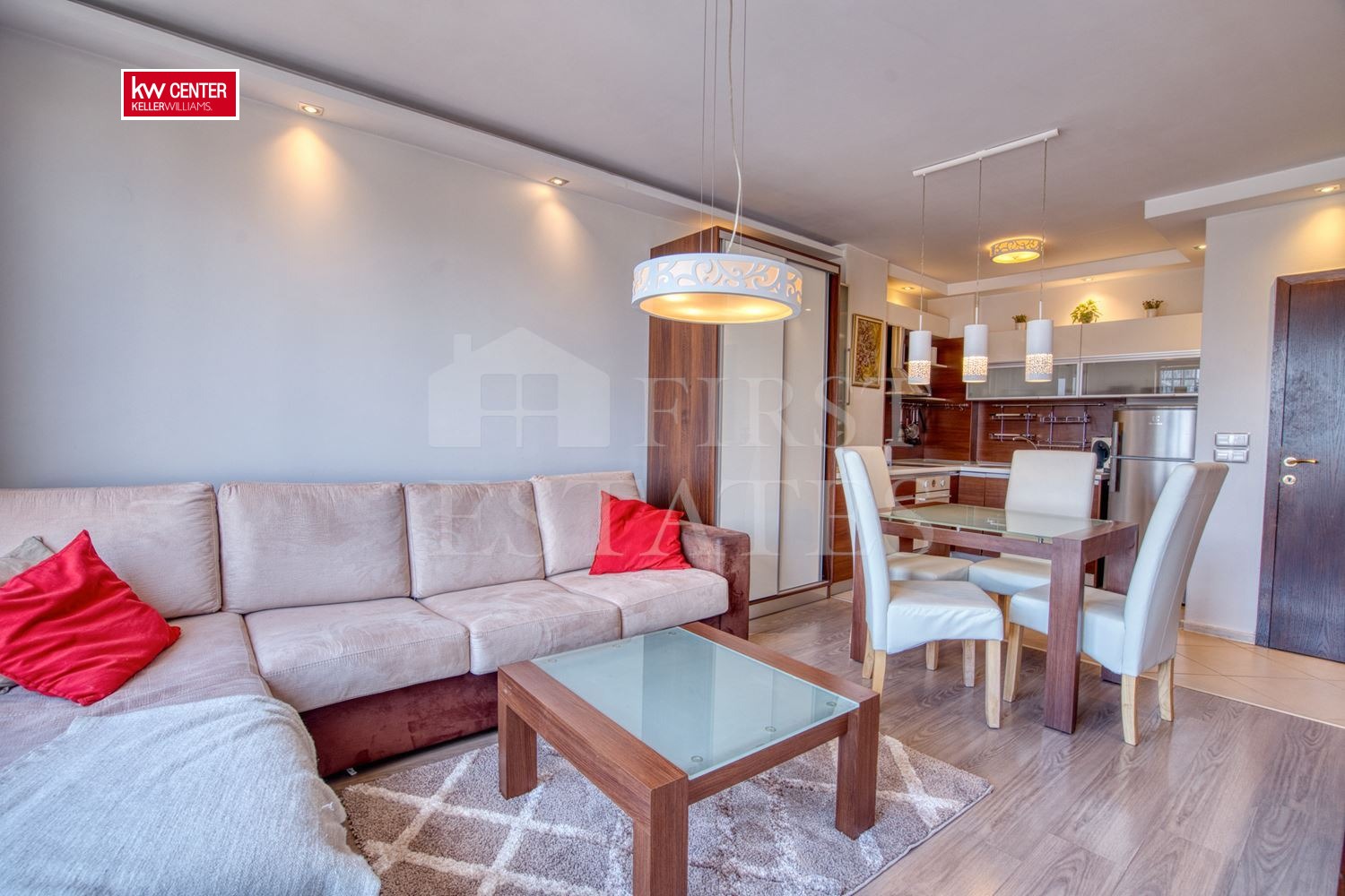 Агенция за недвижими имоти Фърст Естейтс, част от Keller Williams, предлага на вашето внимание уютен двустаен апартамент под наем, разположен на последен шести етаж в добре поддържана сграда с асансьор. Имотът е с площ от 56 кв.м. с перфетно разпределение и уютна атмосфера.