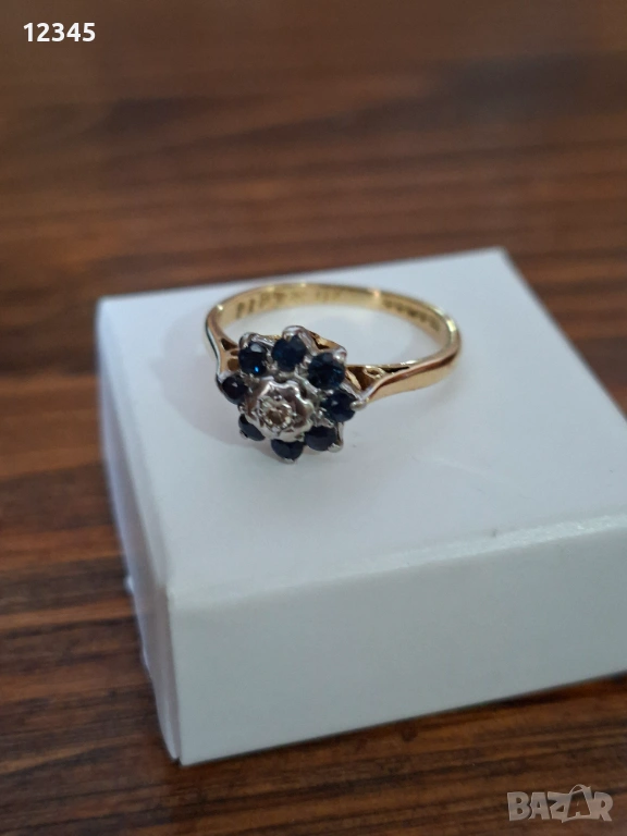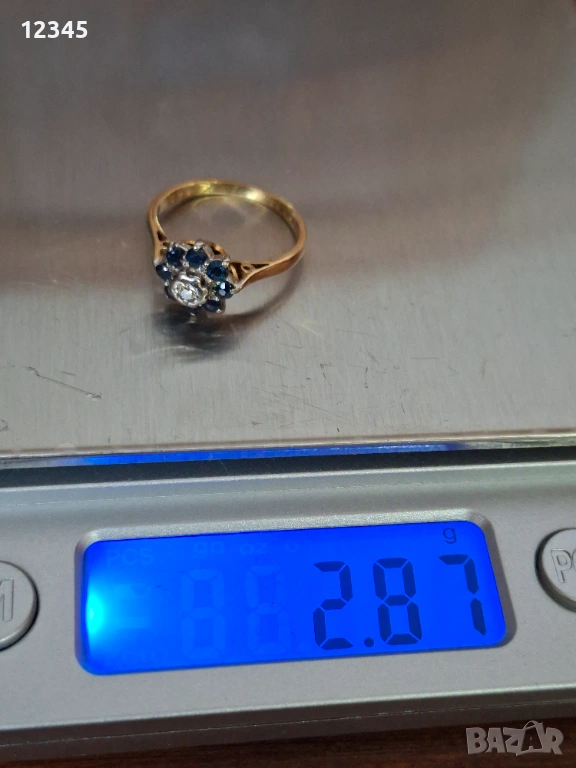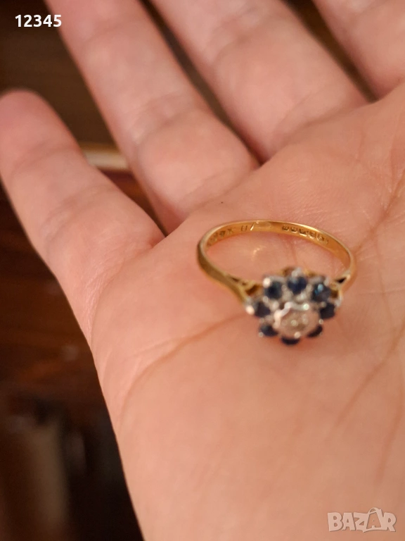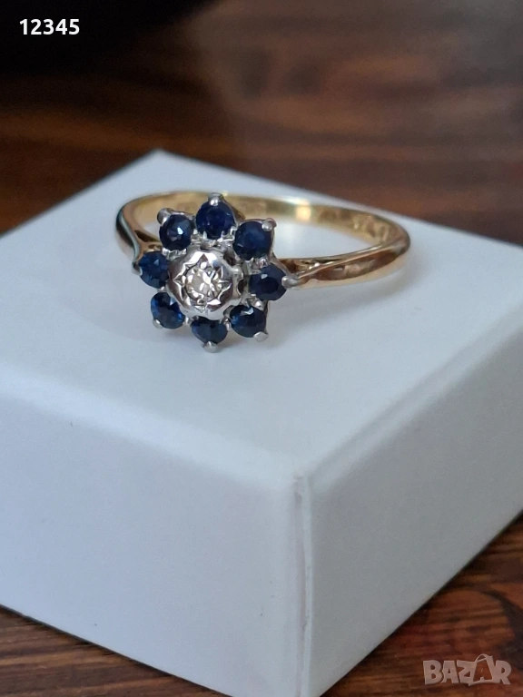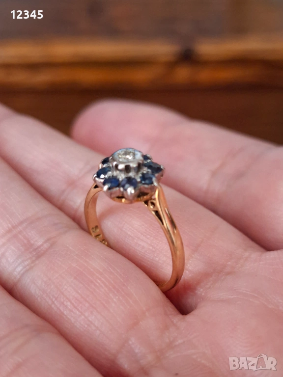 Старинен златен пръстен диамант и сапфири → Обява 54075788