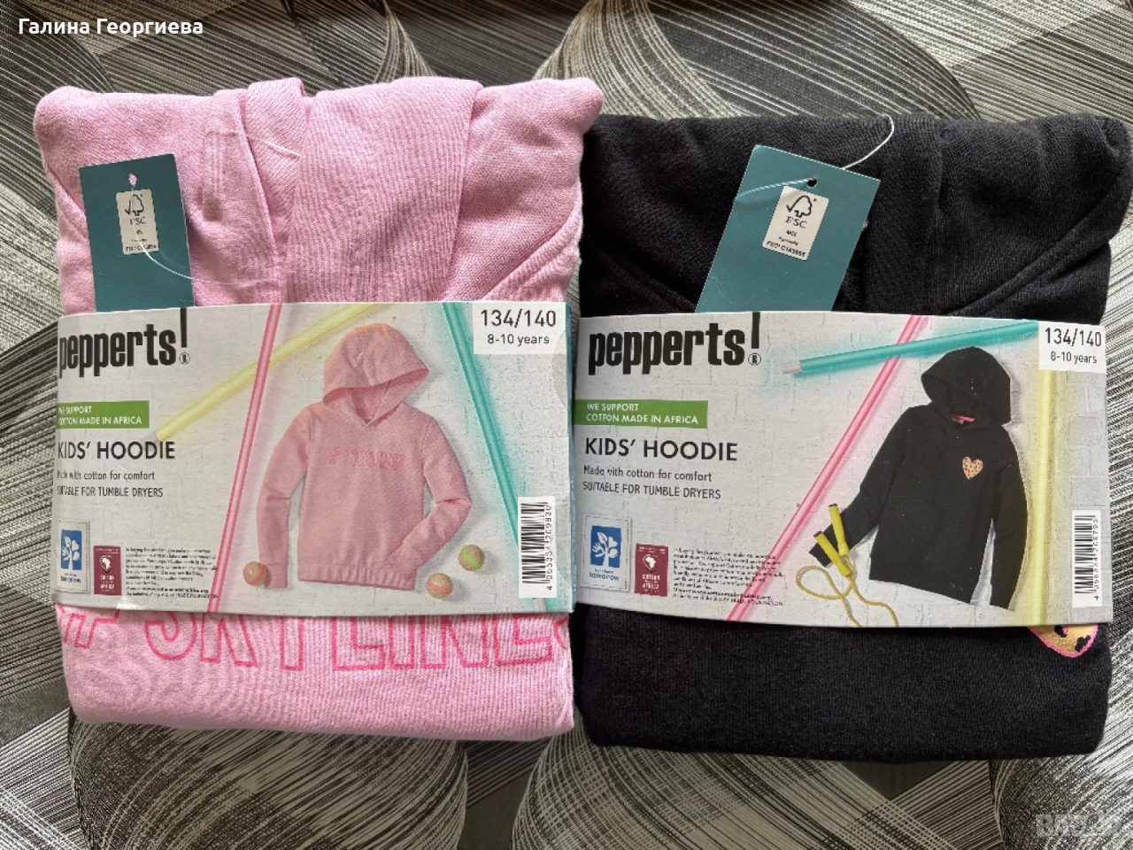 Чисто нови 2 броя с ектикет суишърти с качулка за момиче Pepperts - розов и черен със сърце. 134-140 см. 8-10 години. По 15 EUR всеки един.
