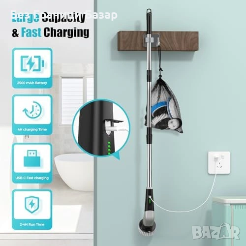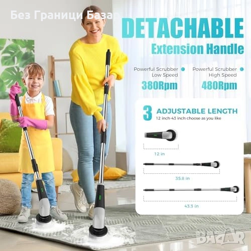 Безжична електрическа четка за почистване с дълга регулируема дръжка