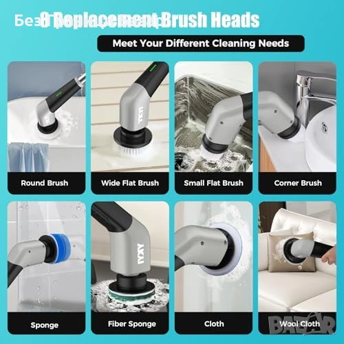 Нова Безжична електрическа четка за почистване с 8 приставки за баня плочки дом