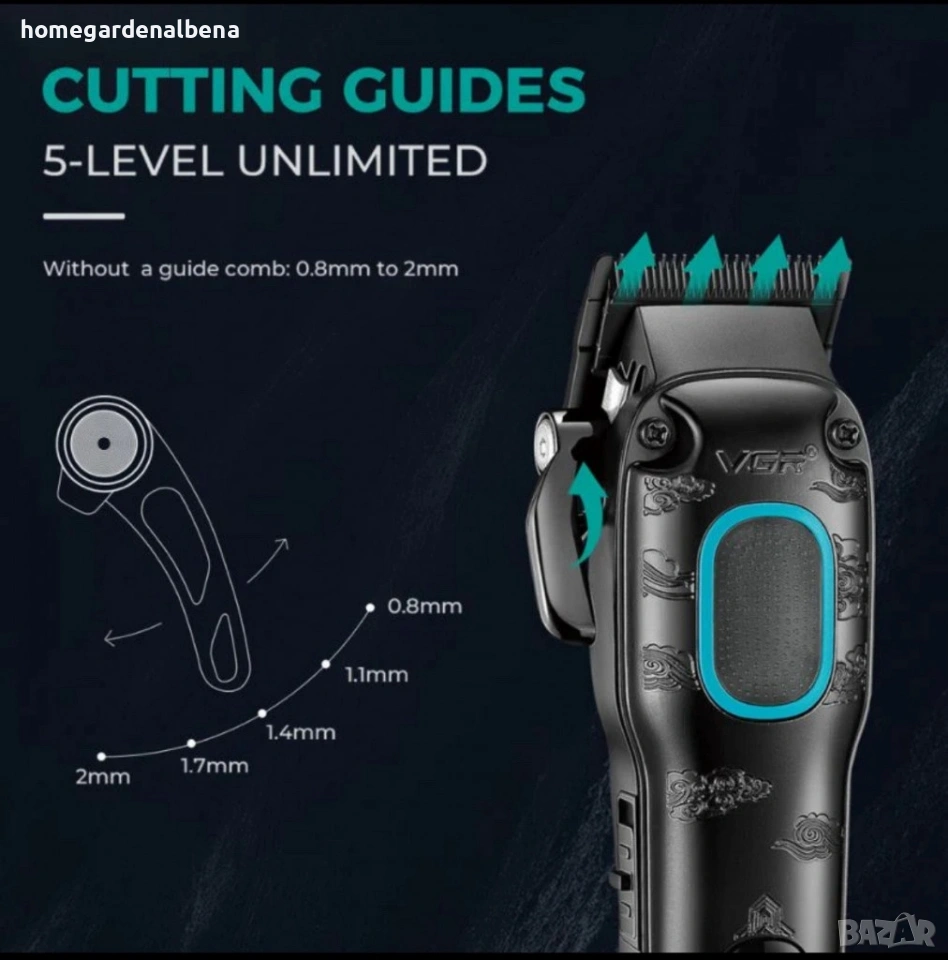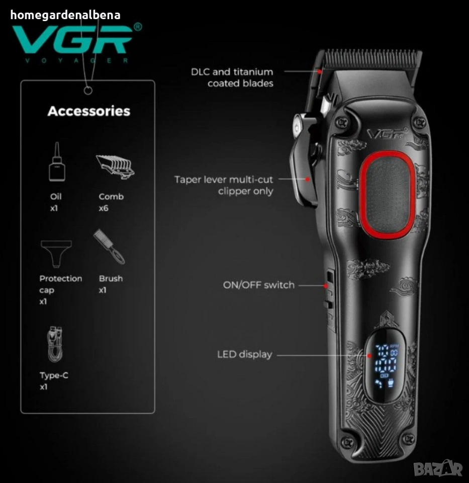 Home&Garden by Albena представя професионалната машинка VGR V-016 – мощна, надеждна и с елегантен метален корпус. Идеална за домашна или салонна употреба, с дълга работа без прекъсване и прецизно подстригване.