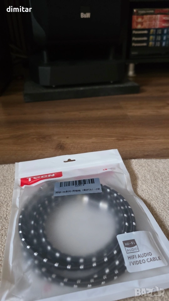 TODN Digital Audio Coaxial Cable 75Qhigh end Rca to Rca Male Stereo Cable Speaker Hifi Subwoofer Cable AV TV дължина 2м,кабела е чисто нов!