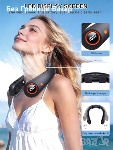 Нов Вентилатор за врат акумулаторен 3 турбини LED дисплей 5 скорости за лято охлаждане