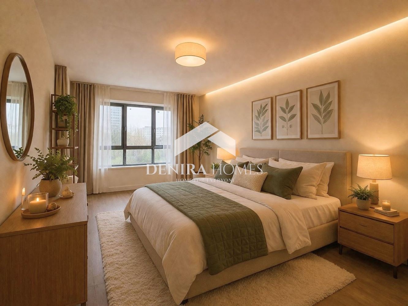 Апартаментът предлага функционално разпределение, което позволява обособяване на светла дневна с кухненски бокс и трапезария, две комфортни спални, баня с тоалетна, отделна тоалетна, лоджия към дневната и тераса с излаз от двете спални.