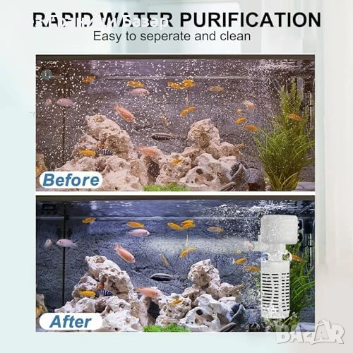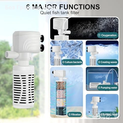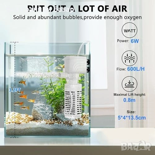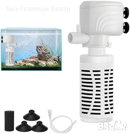 Вътрешен аквариумен филтър 4 в 1 с функции за филтрация, кислородиране, циркулация и воден поток тип водопад