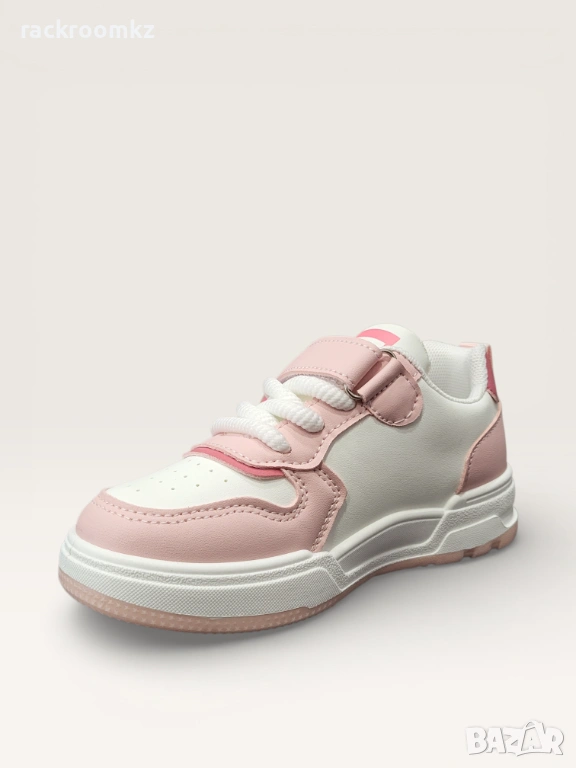 - Комбинацията от бял и розов цвят придава свеж и стилен вид, а декоративният елемент във формата на сърце прави обувките още по-атрактивни за децата.