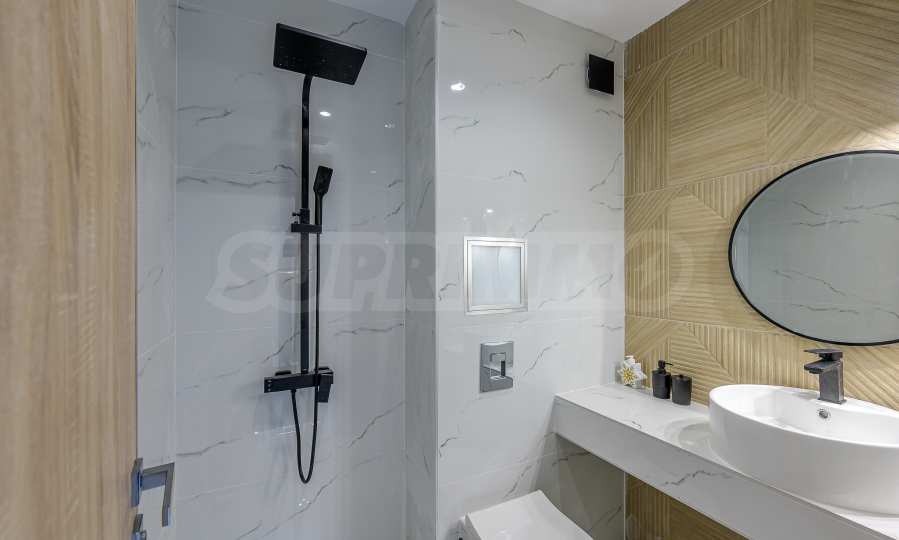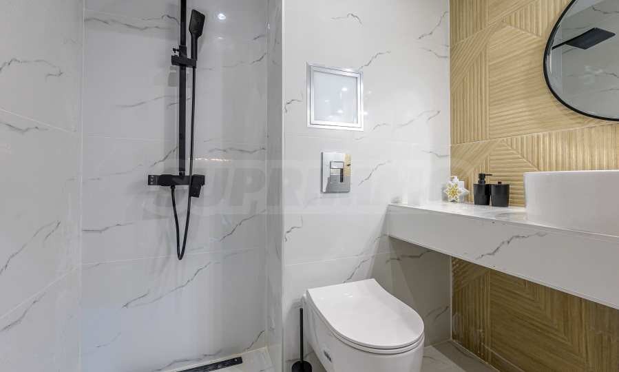 - Баня, изпълнена с качествени материали и изчистен дизайн