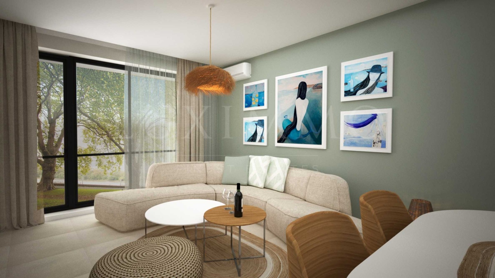 стени на варо-циментова дишаща мазилка с цвят по избор на клиента;