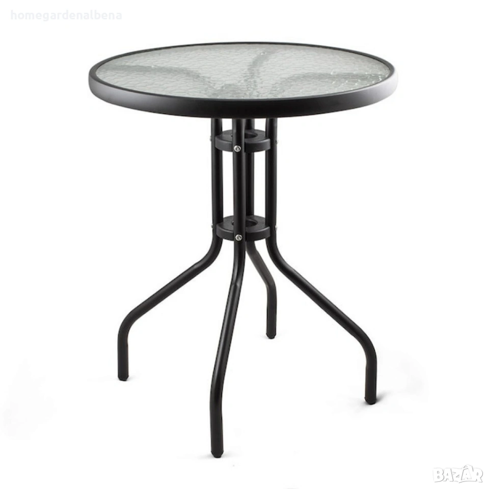 Home&Garden by Albena представя масата Muhler 60xH74cm – стилна и устойчива маса, подходяща за външна употреба. Изработена от закалено стъкло и метал с прахово покритие, за дълготрайна експлоатация и елегантен външен вид.