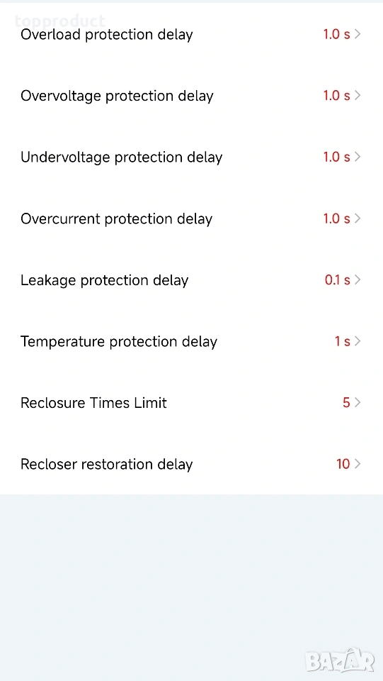 Смарт защити от пренапрежение, ниско напрежение, свръхток, ток на утечка, защита от висока температура. Може да се променят параметрите, времето за реакция, както и времето за възстановяване.