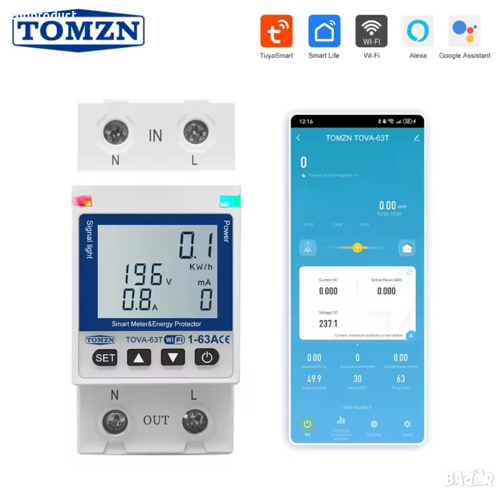 Смарт защита от пренапрежение TOMZN, напреженова защита, Smart, WiFi