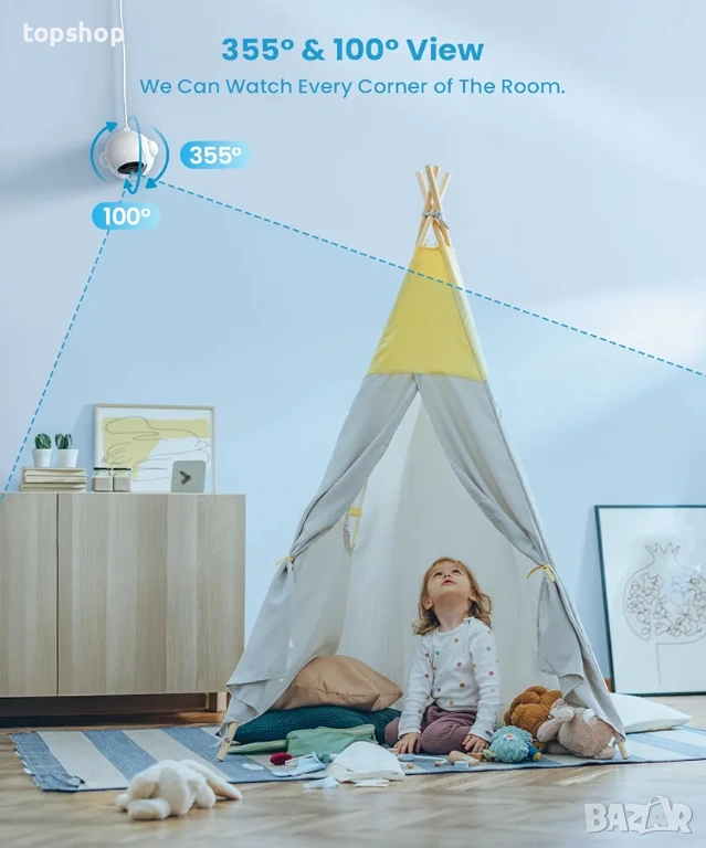 Дистанционно въртене на камерата на 355 градуса хоризонтално и 100 градуса вертикално с 4 пъти приближение