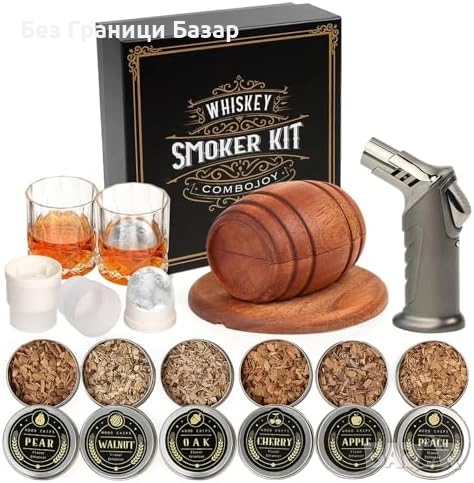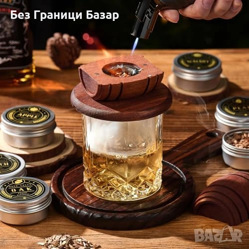 Комплект за опушване на уиски и коктейли с дъбов пушач и горелка
