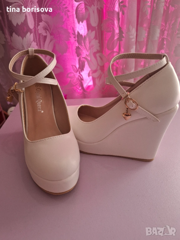 Дамски бели обувки на платформа → Обява 54077134