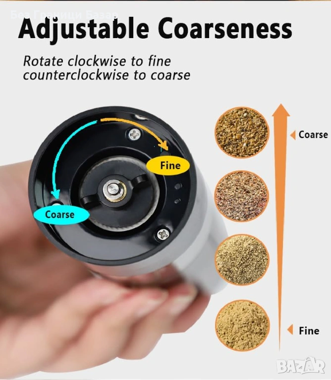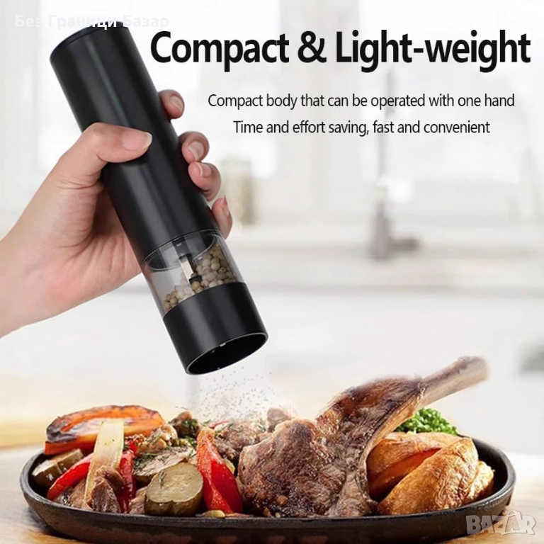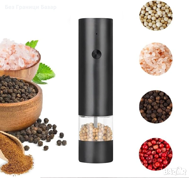 Нова Електрическа мелничка за подправки с капаче против прах USB с регулируемо смилане сол пипер