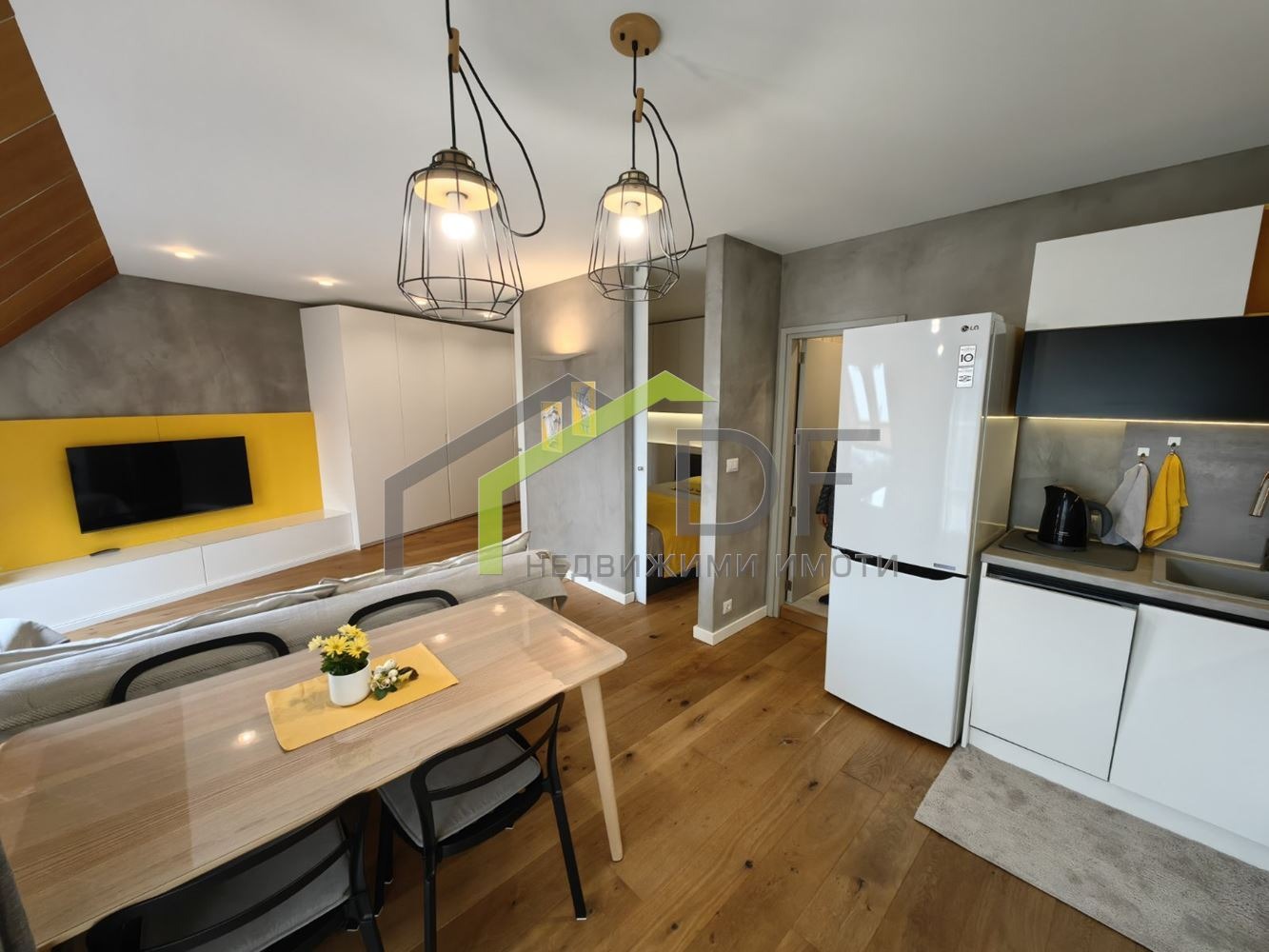На площ от 64кв.м са разпределени както следва: входно антре, напълно обзаведена и оборудвана кухня с трапезария и всекидневна, спалня, баня с тоалетна и тераса. Отдава се във вида от снимките. Имотът се отоплява с климатик.