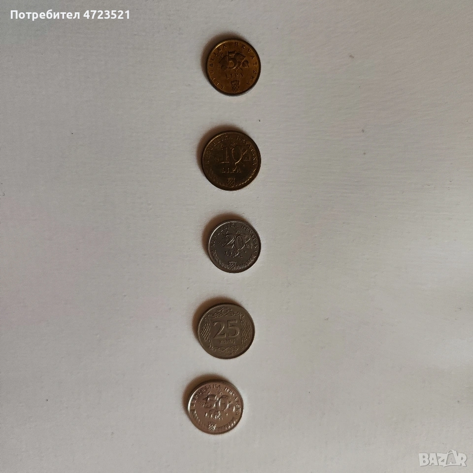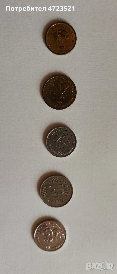Лот от шест хърватски монети от 5 до 50 липа → Обява 54077212