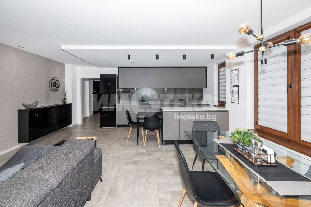 Апартаментът е луксозно обзаведен с внимание към всеки детайл. В интериора са използвани висококачествени материали, дизайнерски решения и модерни мебели, които създават усещане за елегантност и уют. Готов е за нанасяне без необходимост от допълнителни инвестиции.