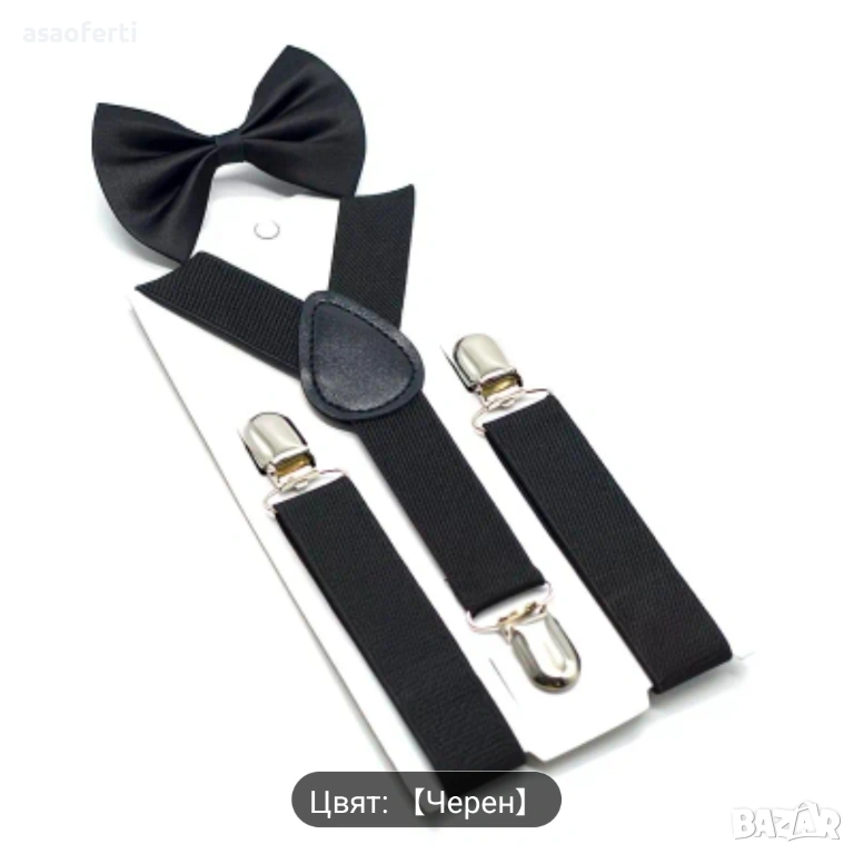 Детски тиранти и папионка в черен цвят → Обява 54077443
