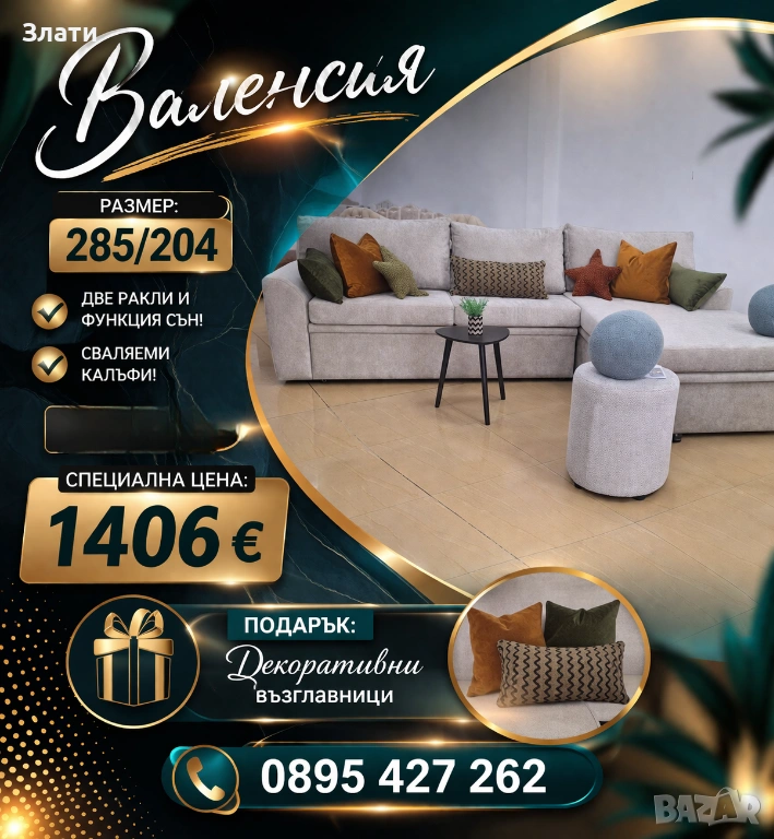 Диван "Валенсия,"Функция сън и две ракли, сваляеми калъфи, висок клас дамаска!