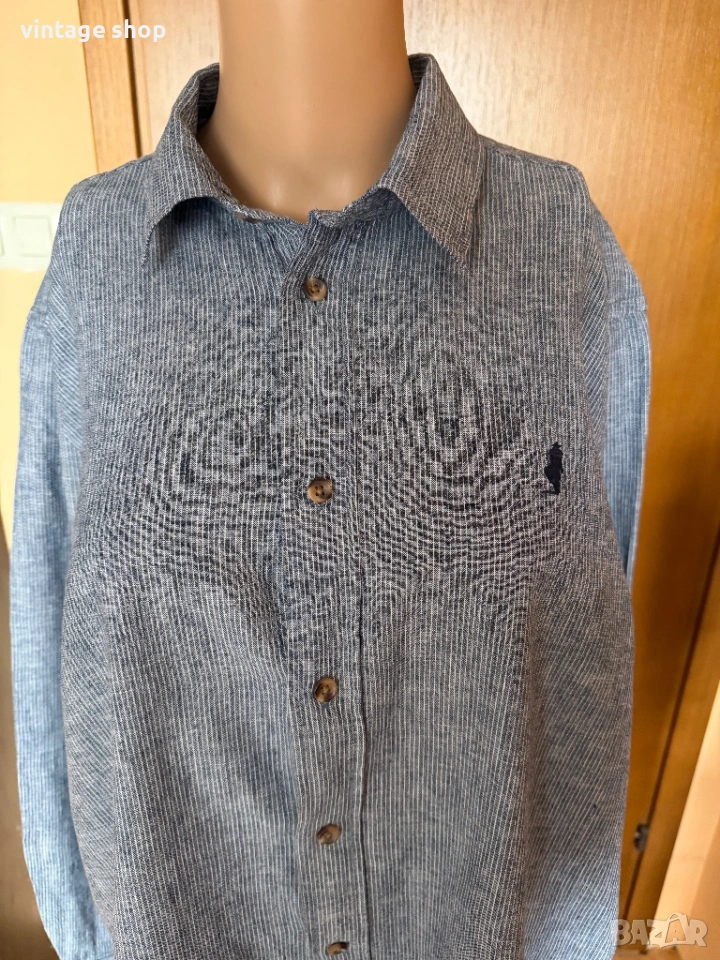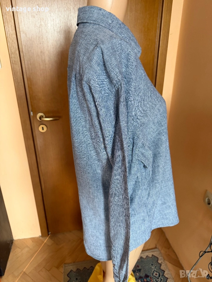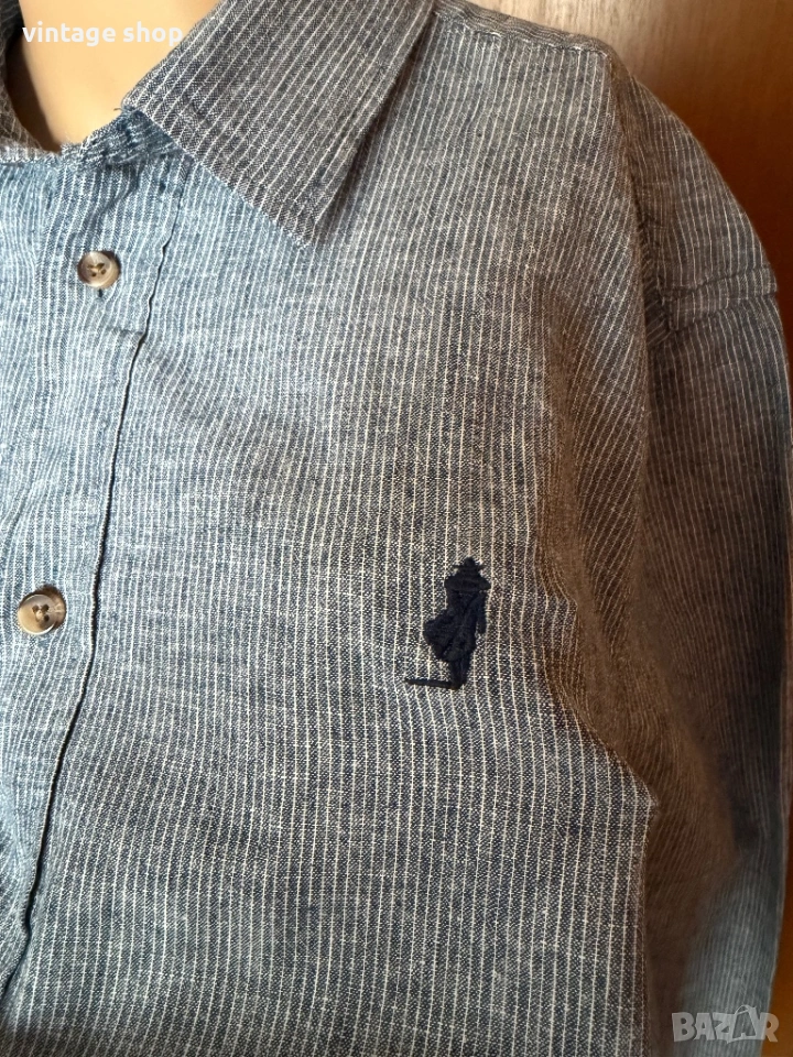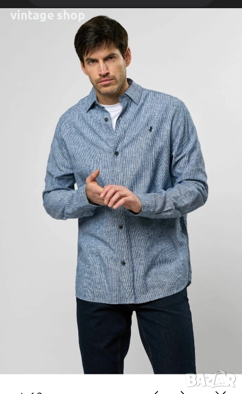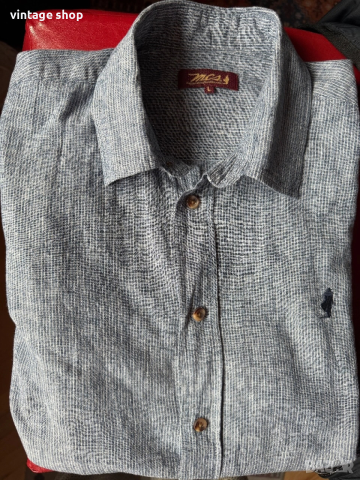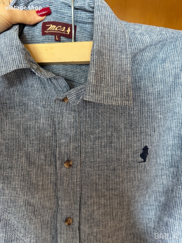 Риза на бранда MCS, познат още като Marlboro Classics. Класичеки десен райе- тъмносиво и бяло. Страхотна комбинация от етествени материи- лен (55 %) и памук (45%). Стои страхотно с бяла тениска отдолу и с любимия деним.