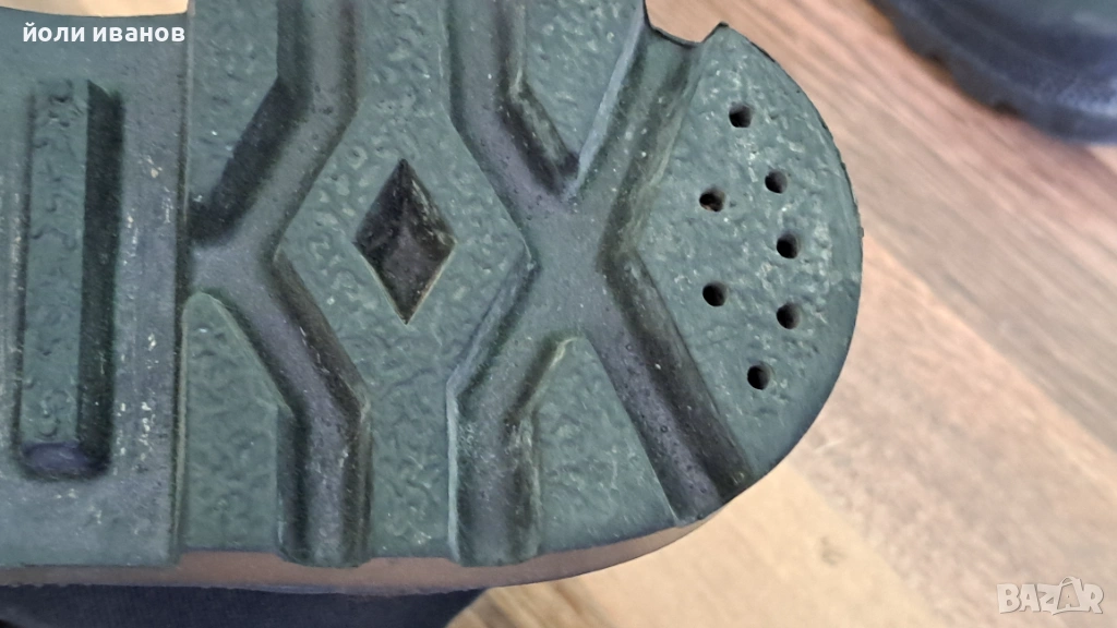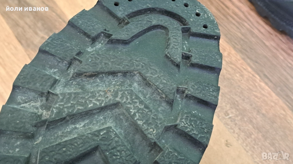 Високи обувки над глезена подходящи за горски преходи по неравни терени,направени от дебел импрегниран брезент,отвътре подплатени допълнително,гумен борд отпред,висока подметка,идеално състояние,почти неносени 45 номер