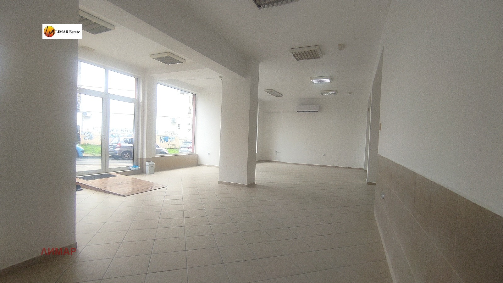 Общата площ на магазина е 125кв.м, височина на витрините- 3.50м., ширина- 9м.