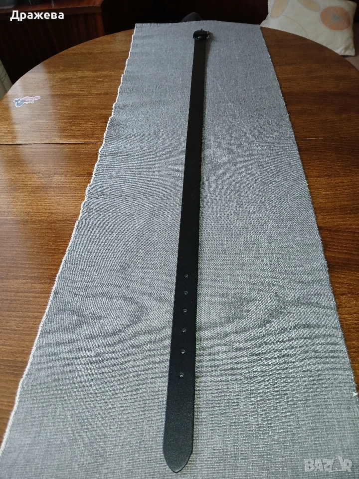 Размери: 96см/2.8см/3мм; първа дупка на 76см, гладка естествена кожа, цвят черен.
