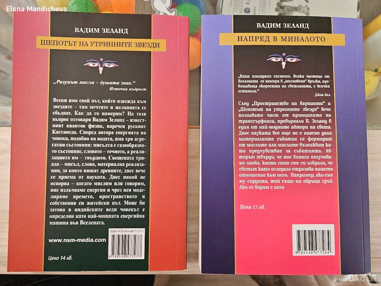 1. Напред в миналото Част III Автор: Вадим Зеланд 2. Шепотът на утринните звезди част II Всяка книга по 6 евро 2те книги за 10 евро Бонус отбелязка за книга човече