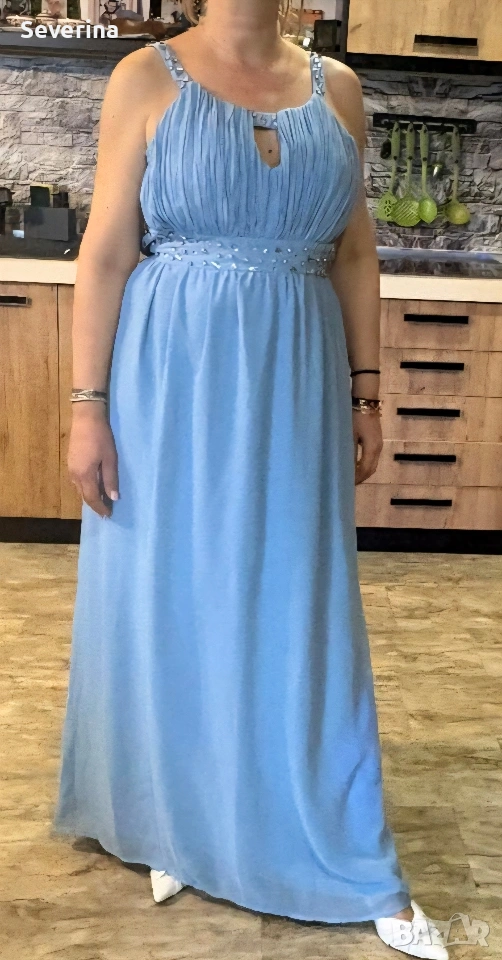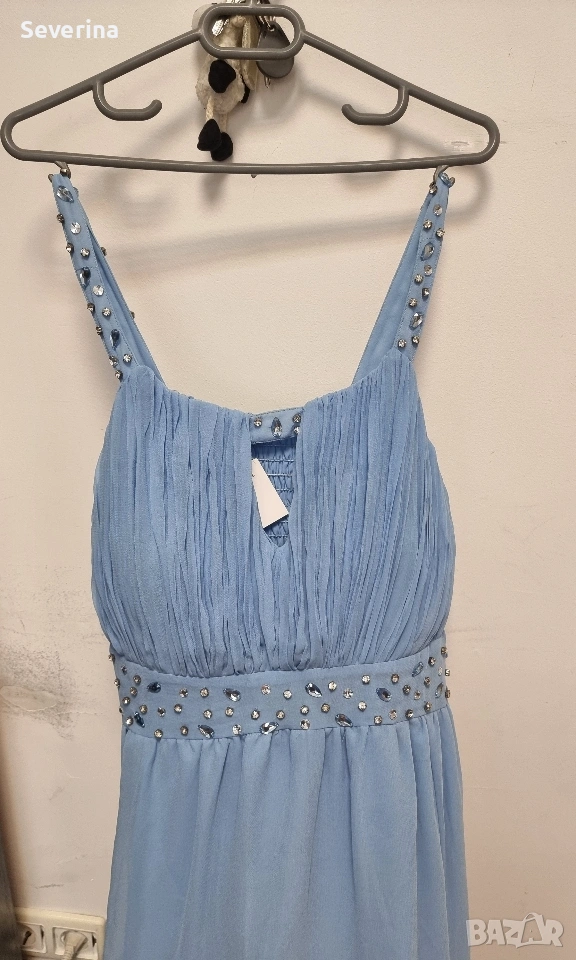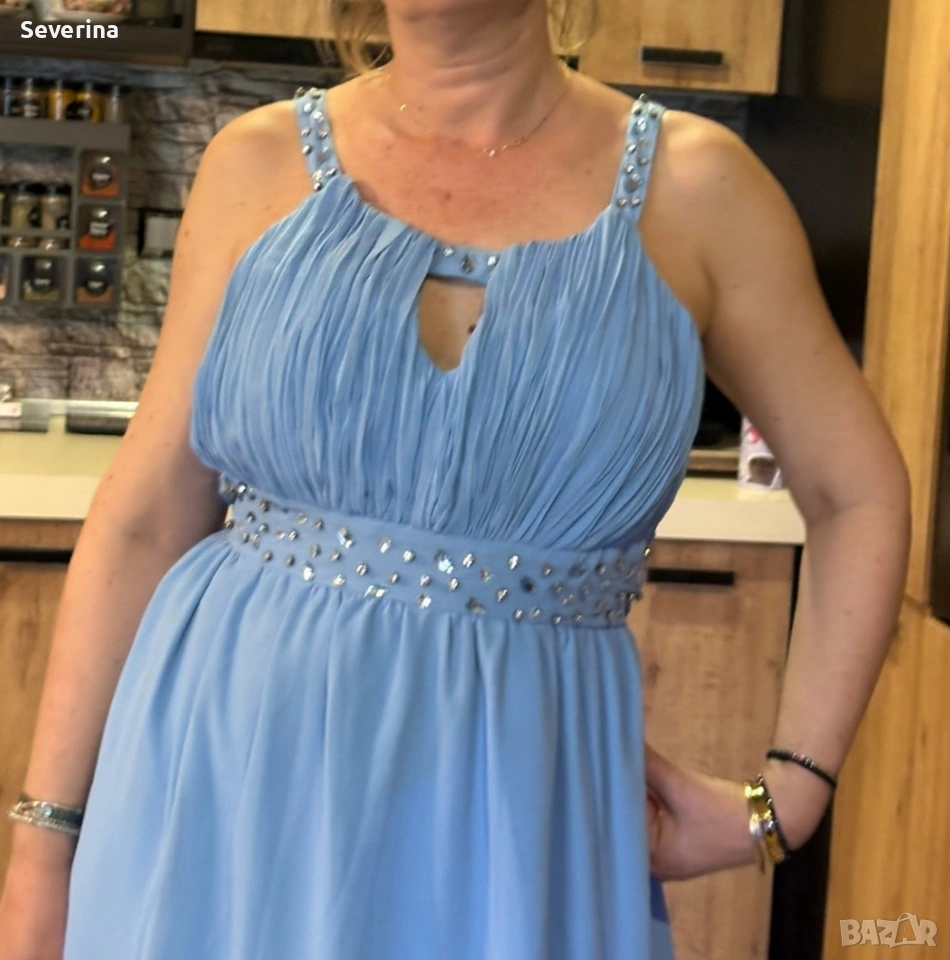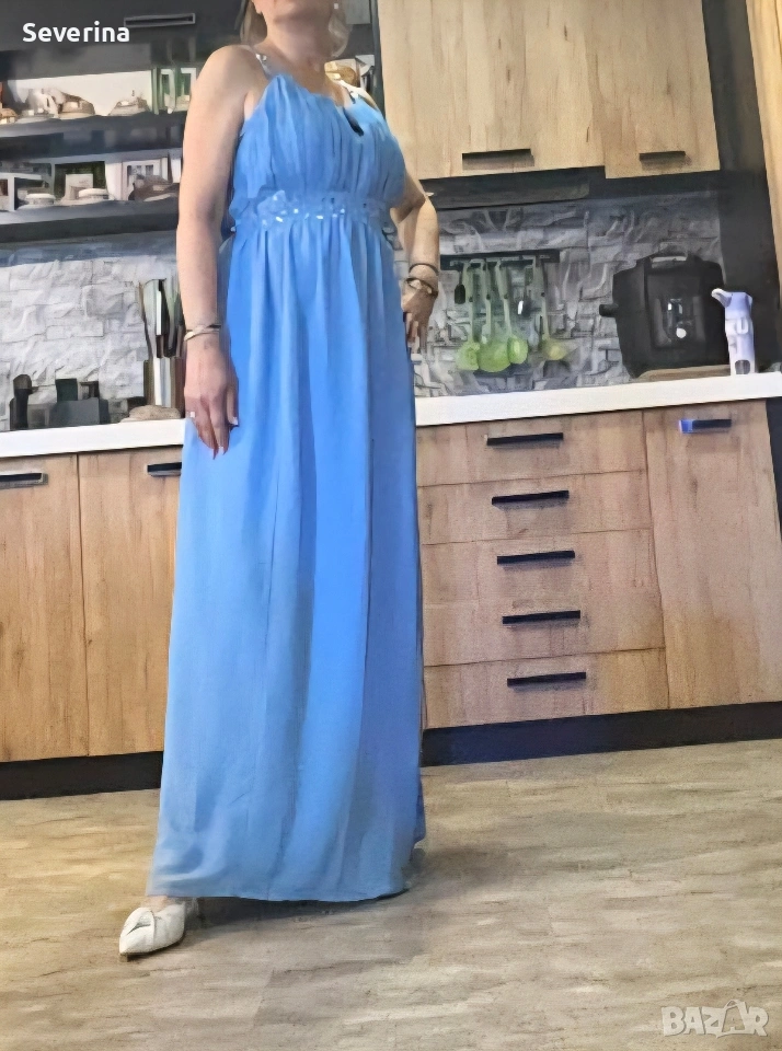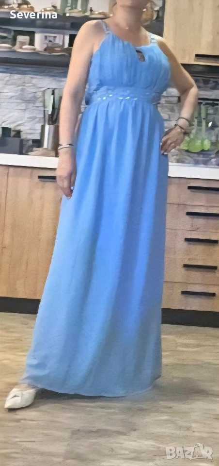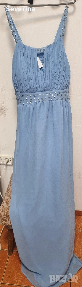 Невероятен,небесно син цвят, официална рокля на марката LABEL BE .Поръчах я за повод,но ми е леко голяма, затова я продавам, нова е,без етикет!Стои изключително ефирно и изискано.Цената и бе доста повече!