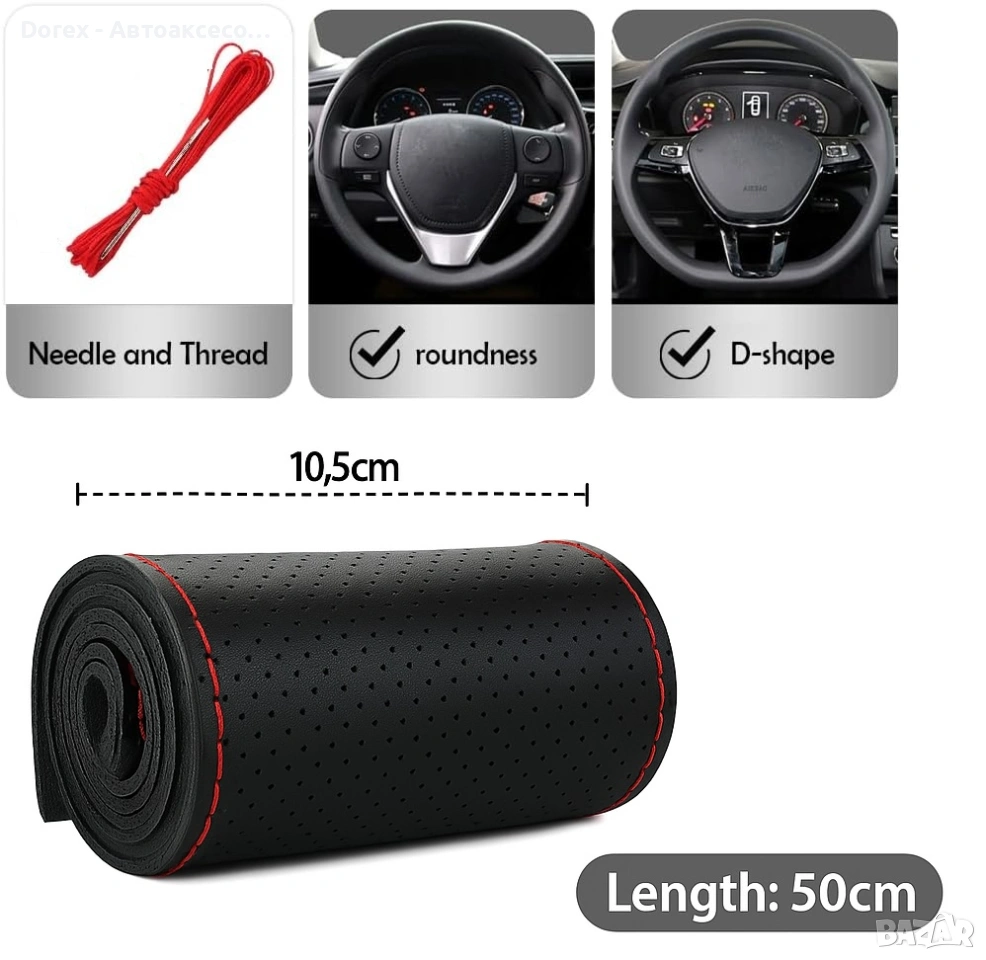 Монтаж: Калъфът се поставя чрез ръчно зашиване, което осигурява стабилно и точно прилепване към волана.