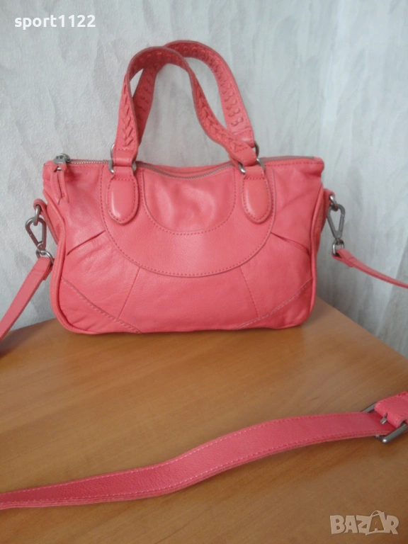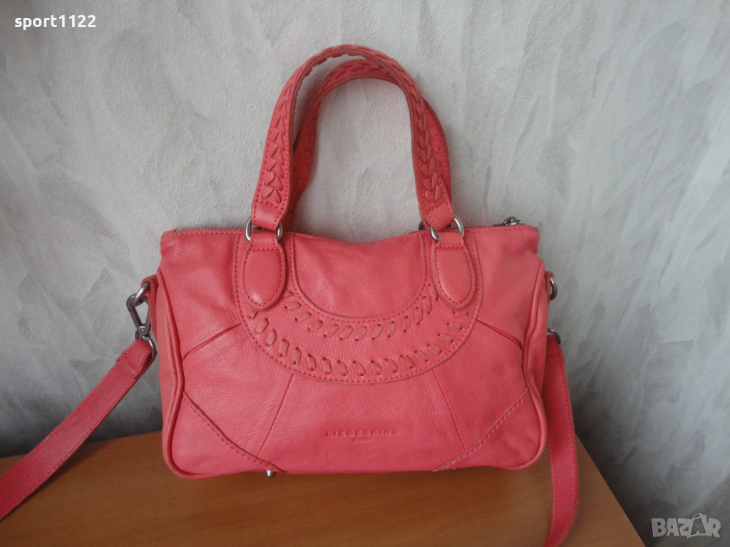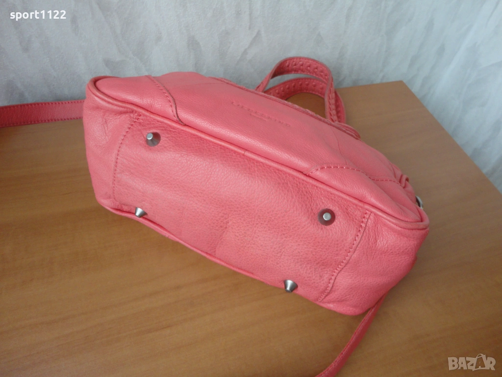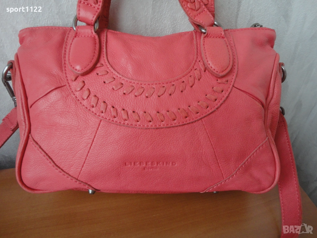 Liebeskind Berlin - малка чанта в коралов цвят, от естествена кожа. Отлично е състоянието, много малко е ползвана. Има три вътрешни джоба, подвижна дълга дръжка.