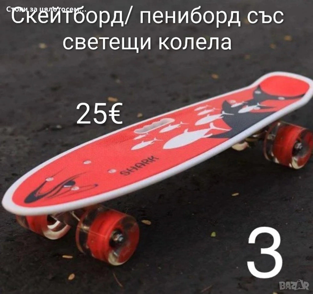 Скейтборд/пениборд със светещи колела 4 цвята → Обява 54078159