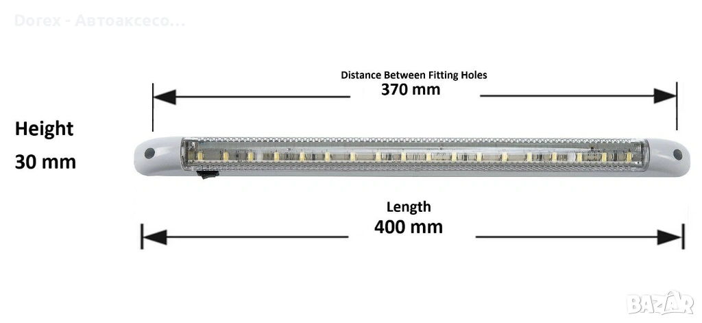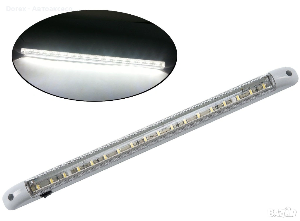 Практична LED лампа тип „тръба“, подходяща за осветление на интериора в автомобил, бус, камион или други пространства. Осигурява ярка бяла светлина и отлична видимост при минимален разход на енергия.