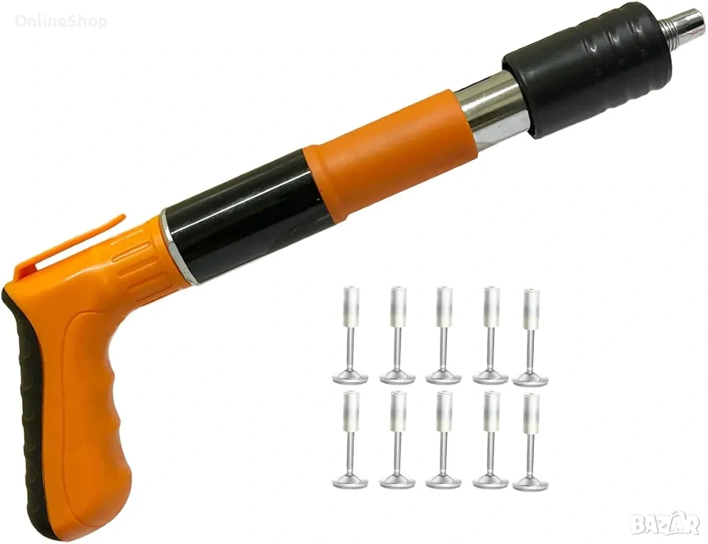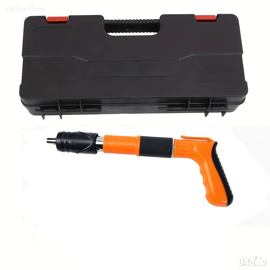 Професионален пистолет за пирони, безшумен дизайн, оранжев, 50 пирона
