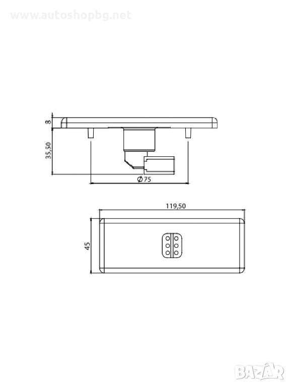 Мигачът се монтира лесно в предната или страничната част на кабината, където изпълнява функцията на индикатор при завиване или смяна на лента. Стабилната светлина гарантира добра видимост дори при лоши атмосферни условия, а здравата конструкция го прави устойчив на прах, влага и вибрации, характерни за тежкотоварната експлоатация.