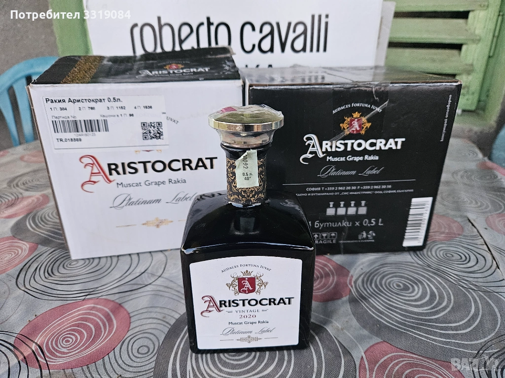 Стилни бутилки от черно стъкло с тапа по 0.5л, наредени в оригиналните им кашончета