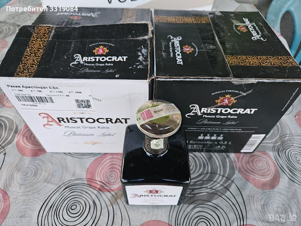 Стилни бутилки от черно стъкло с тапа по 0.5л, наредени в оригиналните им кашончета