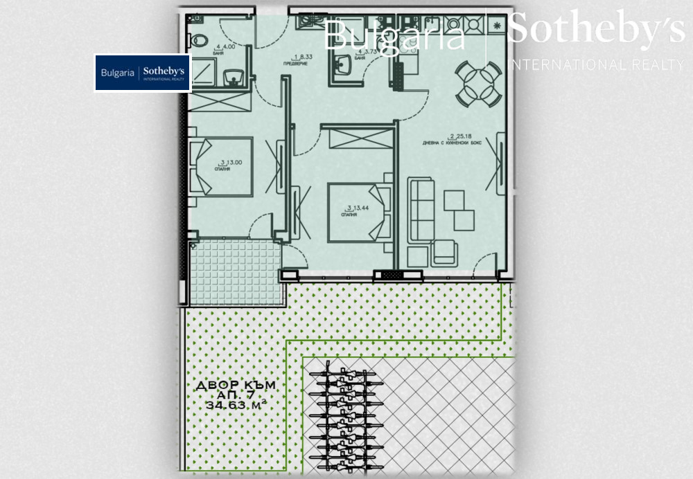 BULGARIA SOTHEBY’S INTERNATIONAL REALTY представя на Вашето внимание апартамент с двор в новострояща се жилищна сграда от реномиран строител с качествено изпълнение. Разположен в близост до нов асфалтиран път, бърз достъп до околовръстен път и главни пътни артерии, но същевременно с това на тихо и спокойно място в динамично развиващия се кв. „Малинова долина“.