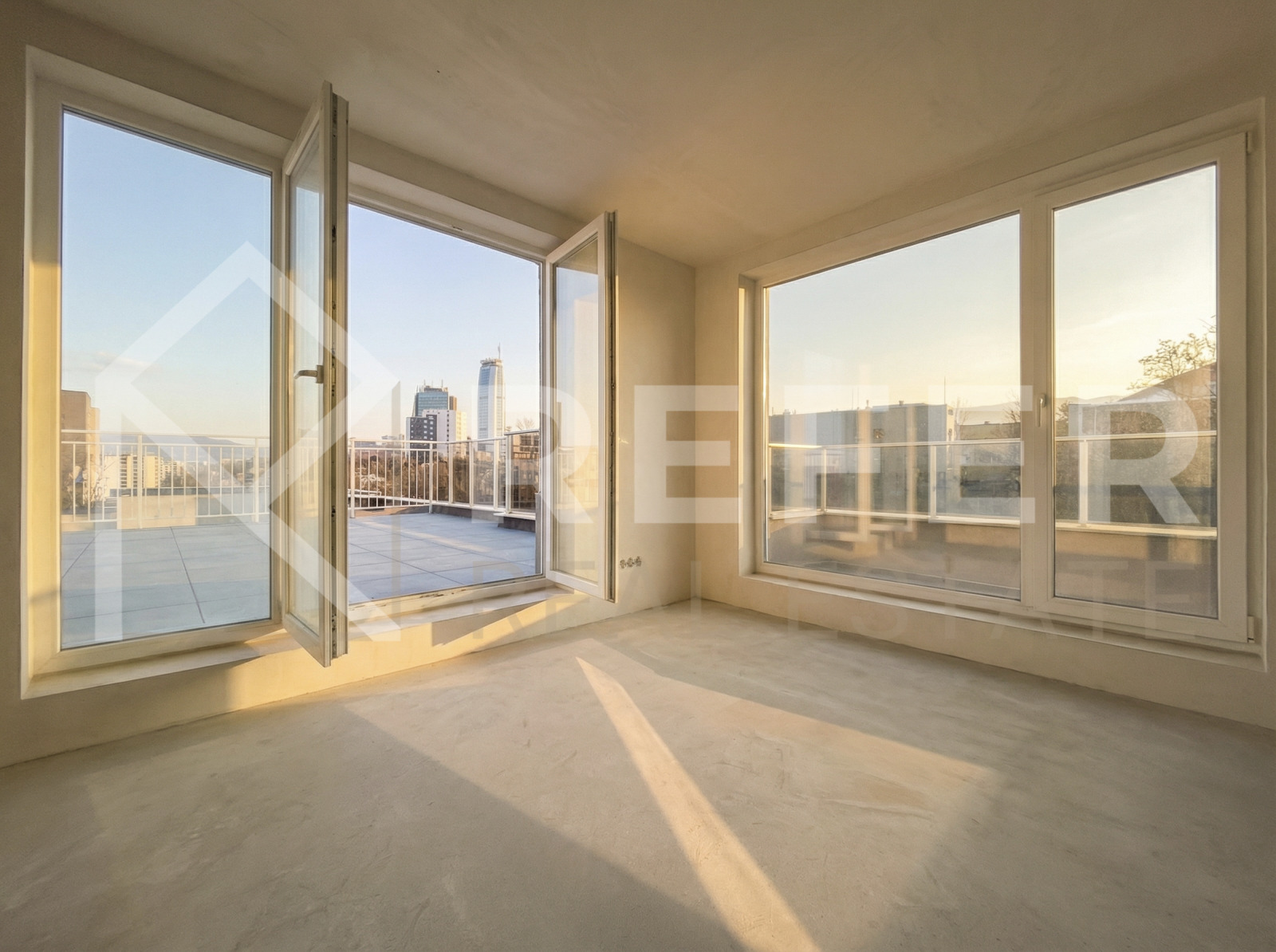 Предлага се за продажба тристаен апартамент в кв. Дружба, разположен на 7‑ми етаж в модерна сграда. Имотът впечатлява с функционално разпределение, щедри площи и голяма покривна тераса, която осигурява уникално външно пространство и панорамно усещане.