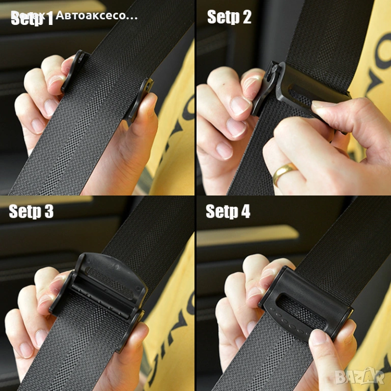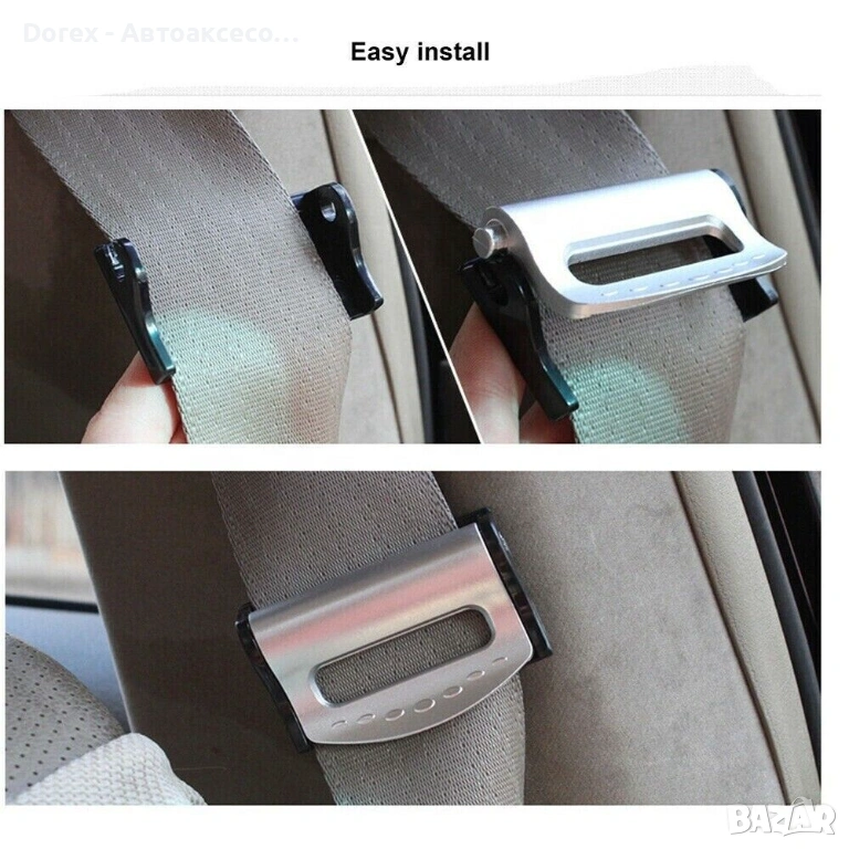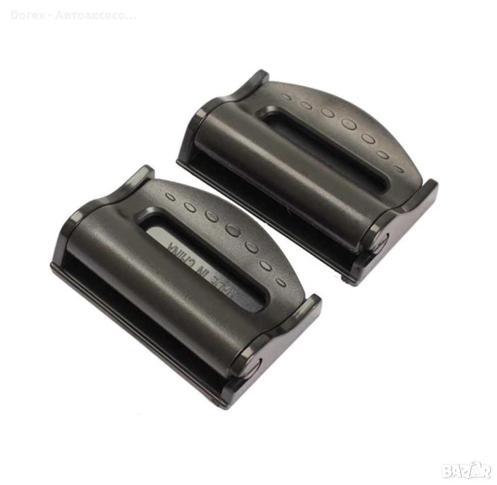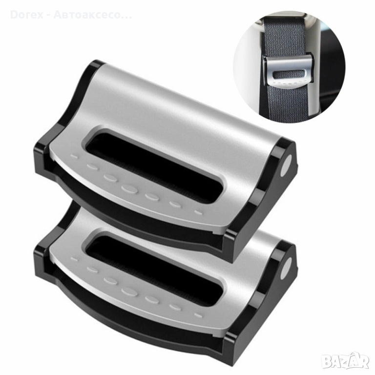 Практичен комплект от 2 ограничителя за автомобилен колан, създаден за безопасно и удобно пътуване. Поставя се върху колана, като предотвратява притискане и дискомфорт, особено при бременни жени и малки деца.